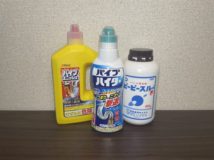 市販のパイプクリーナーは主に3種類。汚れの程度や使用環境に応じて選びましょう。